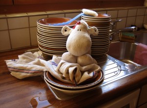 Shaun was part of the photographer’s 365 set (365 days of taking pictures on a certain theme or just of anything, in this case, the theme being Shaun). First, Shaun is demonstrating what I spent a fair bit of time doing yesterday–washing dishes. That was post-dust-bunny-massacre and pre-laundry.