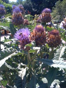 Loved the photo of the ‘chokes! So, the result of having bad cell phone reception in the land of the Amish is that I did not fully hear your story about the artichokes. Somehow I managed to hear that you saw “artichoke soap” in Williamsburg. This was why I was asking how it smelled and that I had never heard of artichokes smelling good enough to turn into soap. This was also why I was confused about the presence of bees (bees like soap?). I am thankful that blogs are not affected by cell phone reception and I now fully understand your artichoke encounter this week. I think you have a new vegetable for your garden next year…who knew they could grow in Hampton Roads?