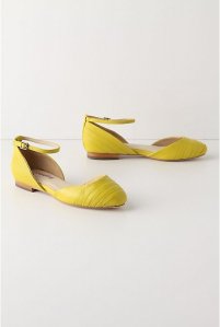 Why yellow shoes?  Because my BFF is getting married, and us bridesmaidy types are wearing yellow shoes, that’s why.  I think it’s a brilliant idea.  There aren’t many perkier colors in the world than yellow, and there’s nothing like perky feet to usher you up the aisle to your man (or her to her man, anyway).  Also, I’m entirely biased because I was a card-carrying member of the yellow team at a summer camp for two years.  Cheering about yellow every day for five or so months of your life really skews your thoughts about colors.  Propaganda is powerful stuff.