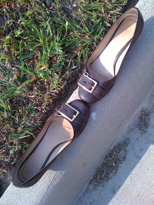 I slipped into that pair of shoes this morning and remembered that there are not one or two, but three holes in their soles. In all fairness, there’s still one layer of interior liner leather between my foot and the ground, but that layer is definitely not supposed to be in contact with concrete.