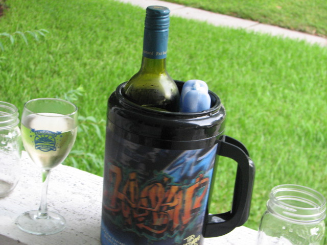 This is our first Scott-and-Hannah garden at a place that belongs to both of us, so that makes it different.  I like it.  I like it a lot.  I also like Scott’s ability to class up a dinner of delicious food with a Big Gulp wine chiller.