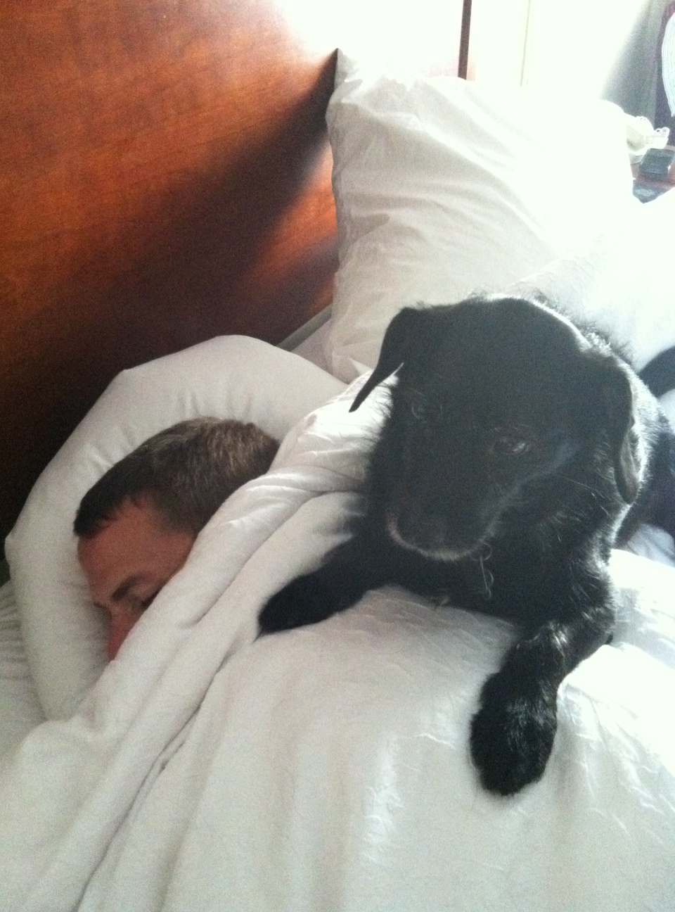 And that’s the prize. Peanut getting sleepy right on top of napping Scott. Classic.