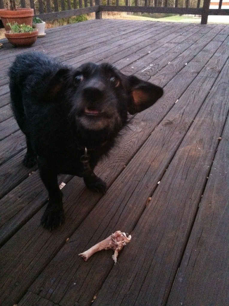 Peanut gave thanks last night for his holiday leftovers. Personally, I love his manic, “I just got a turkey bone” face. It looks like he got away with something he doesn’t want us to know about. Even though Scott handed him his prize, and I was happily documenting.