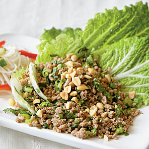 When work finally came to a close, I found my way home for a quick yoga session and some tasty dinner. I’m one lucky lady, because Scott let me pick yoga videos (read: we did the super easy ones), and he practiced his excellent chef skills to make us Asian Turkey Cabbage Cups from Cooking Light. Since we’re still in the middle of Olympic fever, he should get a bonus of 10% for his exceptional acts of kindness in the second half of the program.