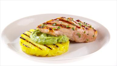 Grilled Salmon with Pineapple and Avocado Dressing