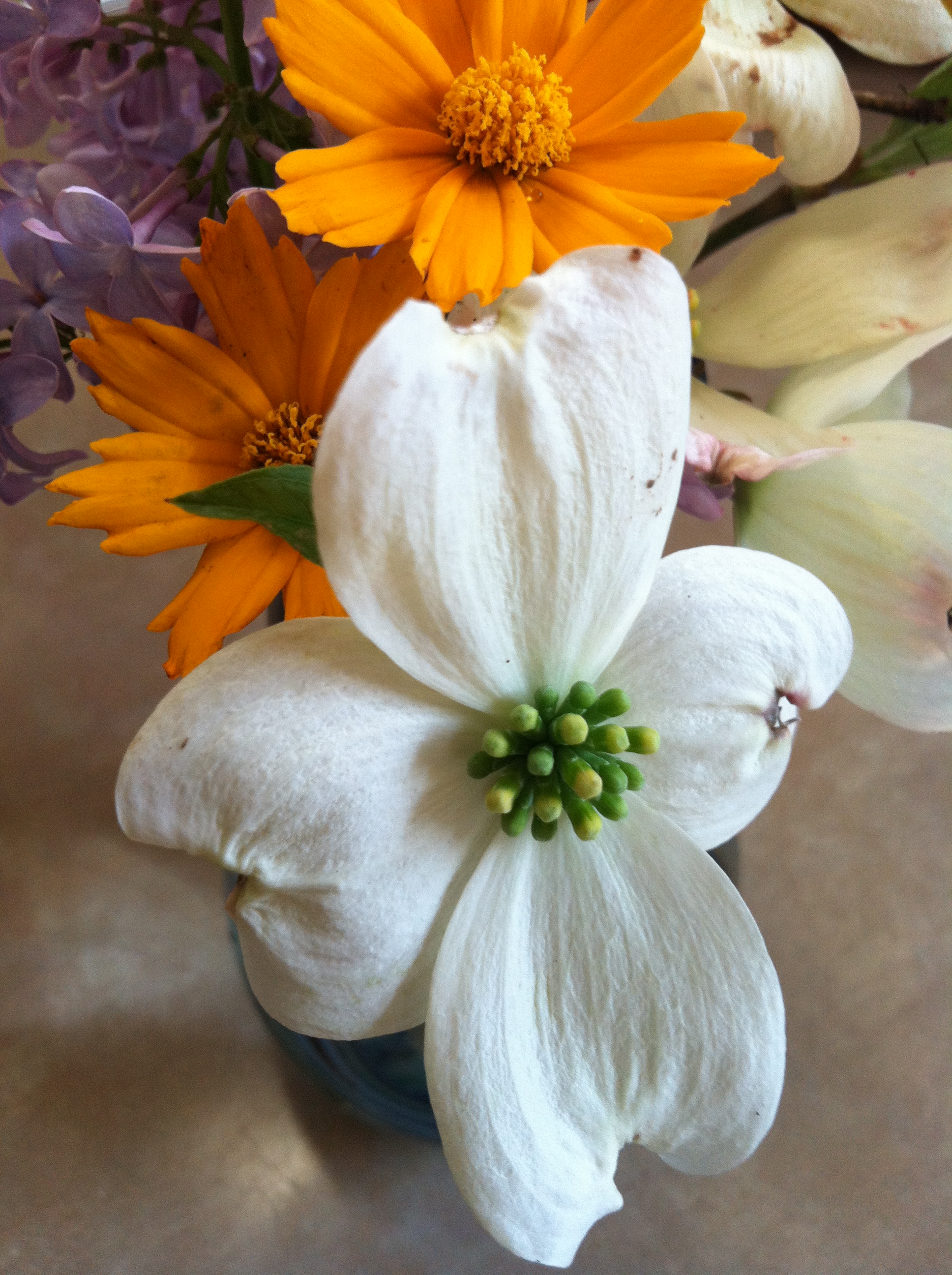 Okay, a couple of them were from our yard the other day, but I added the forest presents to the mix. Turns out that dogwoods do exceptionally well as cut flowers.