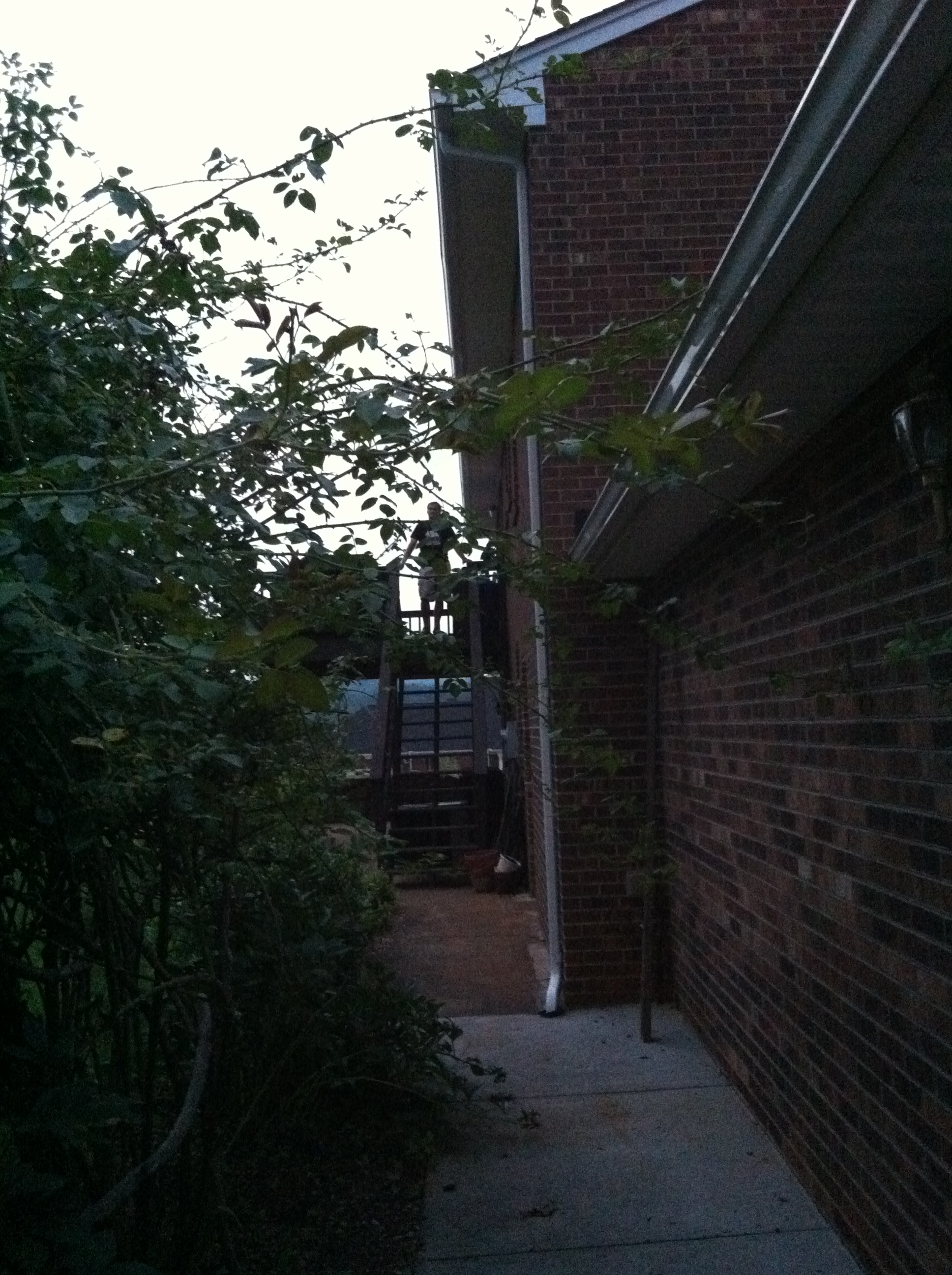 Sure, it’s getting dark, and the picture quality isn’t great. But check out that rose bush! It’s growing on a trellis to the left of the path. We cut it back several feet in September. Then we cut it back several feet in November. And again in March or April. This beast just won’t stop growing! There were no rose branches extending anywhere near the path a month ago. Craziness, I say. Craziness.
