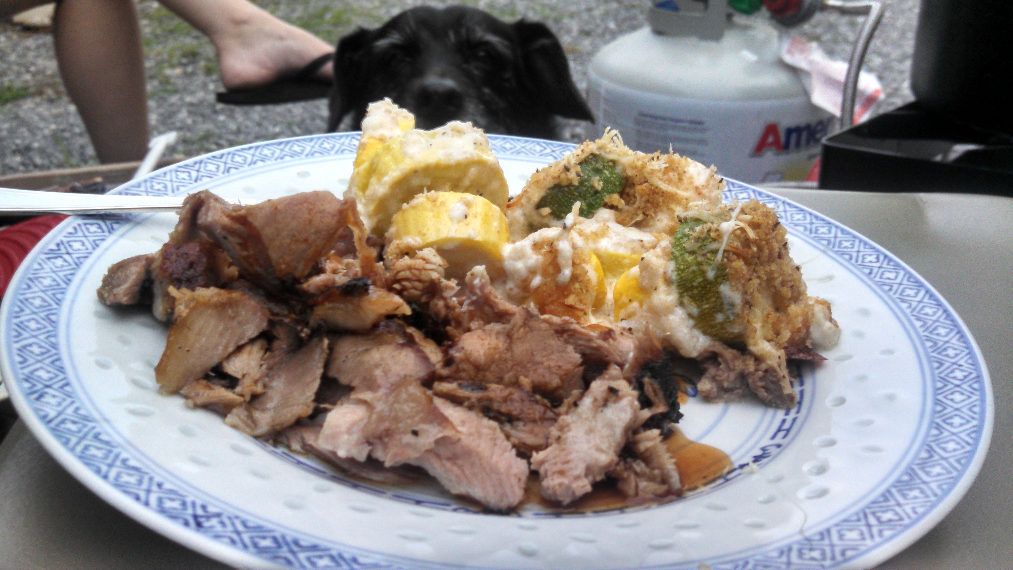 Peanut agrees with me, although he might be eyeing the leftover pulled pork, not the squash.