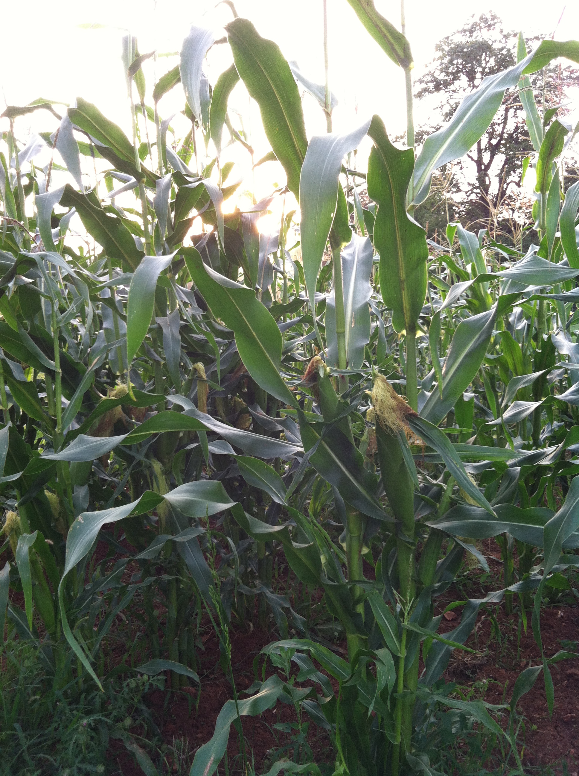 We had a rough time with our corn this year. (And by we, I mean Scott.) Birds kept finding the seeds, and Scott kept replanting until the birds finally gave up. The struggle between man and bird means that our planting, which started out right on time, ended up being a little bit behind the neighbors. Because we live in a place where almost everyone around us also has corn in their yard. It’s fun.