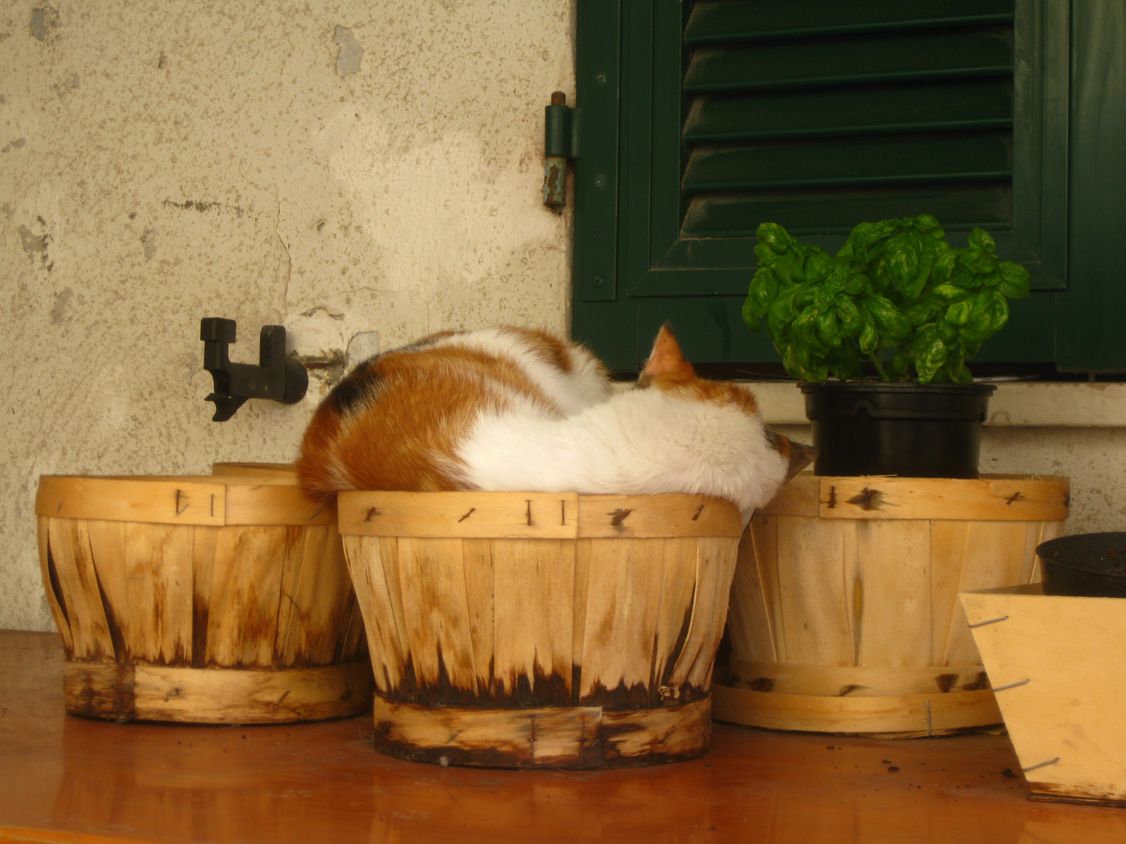 So is this cat. Creative use of mostly empty plant holders, right?