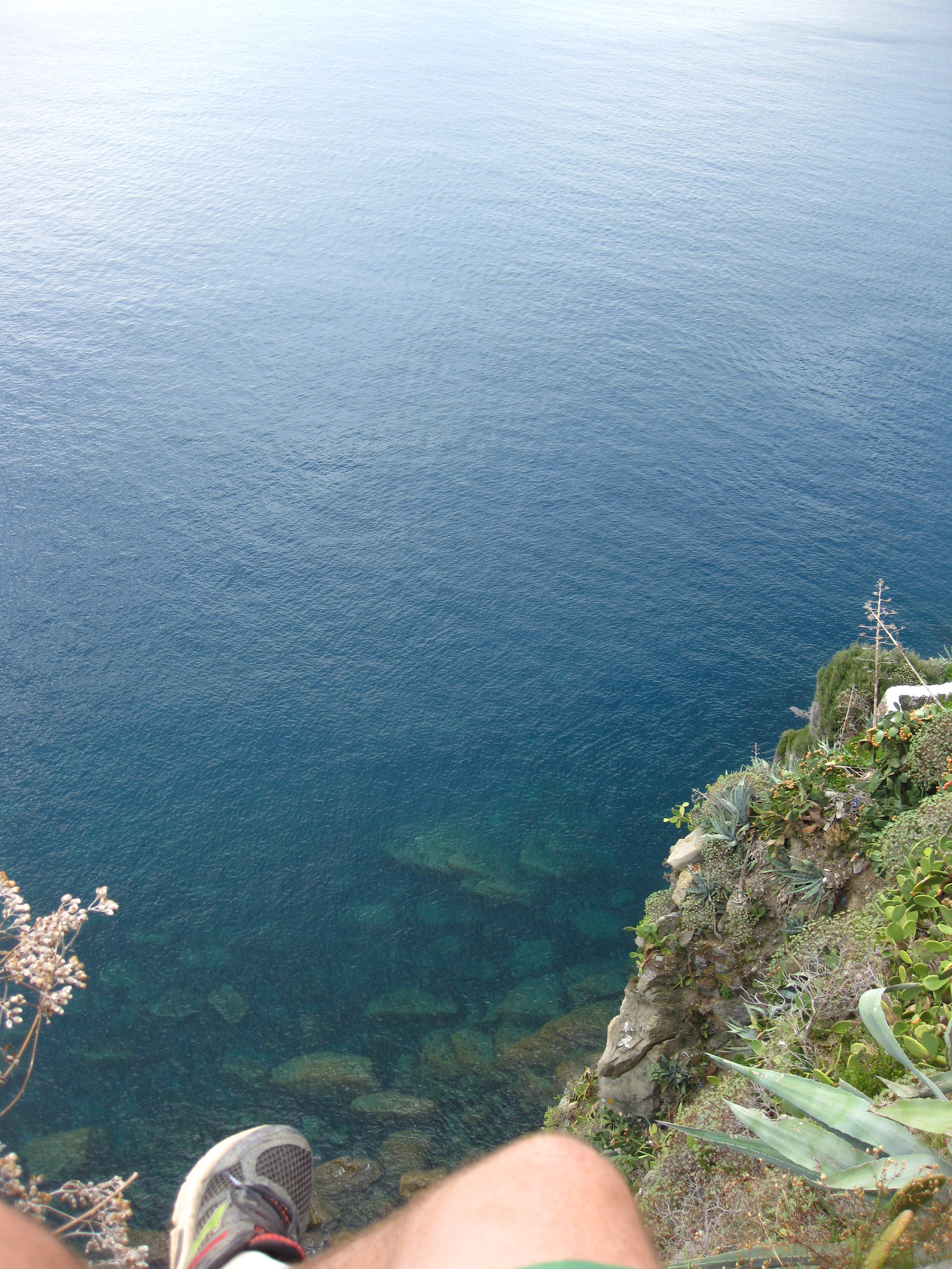 We also like to look at crystal clear water. Scott likes to dangle dangerously over said water. I do not. Thus only one pair of feet.