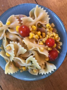 Notes: This is honestly another instance of “I’d like to not measure.” I mostly followed this recipe, using a reckless amount of frozen corn. It was tasty. It’s extra tasty if you take some extra grilled chicken from the fridge, dice it and warm it up to serve on top of the pasta. I’ll admit it needed some additional protein. Go out there and get all of the summer garden produce you can find to pile on top of this pasta.