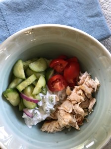 Notes: The tzatziki sauce and cucumber salad make this dish so good! The chicken was low-maintenance, which is also a winner. My real note here is that it’s worth it to buy/own a good meat thermometer. I tend to overcook chicken if left to my own devices. The meat thermometer helps me avoid dry, sad chicken. You can, too.